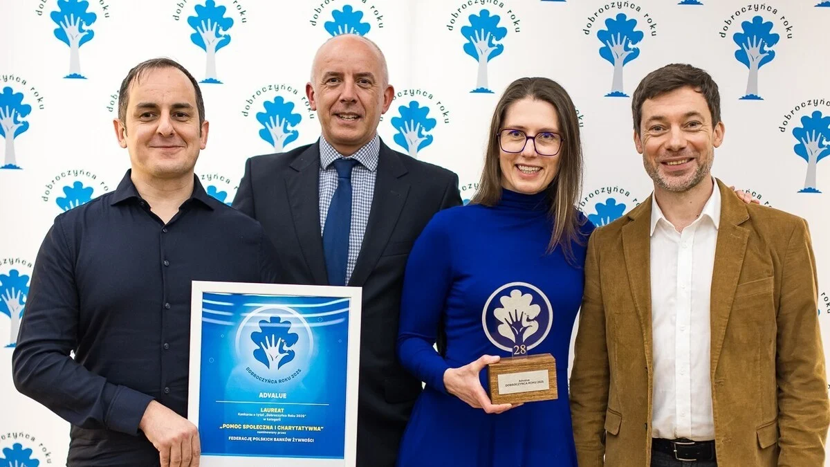 Agencja marketingowa Advalue została uhonorowana tytułem „Dobroczyńca Roku 2025” w kategorii „Pomoc społeczna i charytatywna”. Wyróżnienie przyznano w ramach ogólnopolskiego konkursu organizowanego przez Akademię Rozwoju Filantropii w Polsce, która od ponad 25 lat promuje firmy prowadzące działalność zgodną z zasadami ESG i wspierające rozwój organizacji pozarządowych.