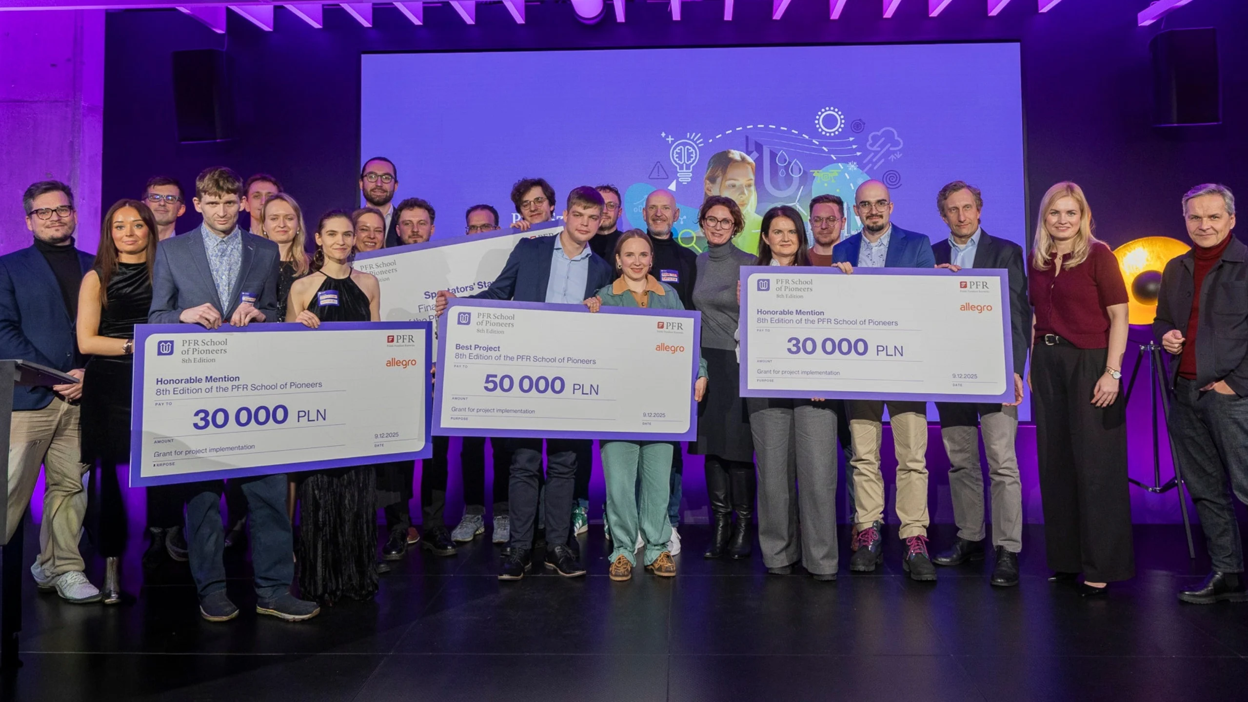 Redukcja mikroplastiku w przemyśle, zmniejszanie zużycia energii w wodociągach, technologie wspierające bioróżnorodność czy narzędzia pomagające lepiej zarządzać energią – to tylko część rozwiązań zaprezentowanych podczas gali finałowej 8. edycji Szkoły Pionierów PFR, programu realizowanego przez Polski Fundusz Rozwoju przy strategicznym wsparciu Allegro.