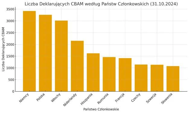 Tabela Państw Członkowskich pod względem Liczby Deklarujących CBAM (stan na 31 października 2024) – Niemcy i Polska na czele deklarujących