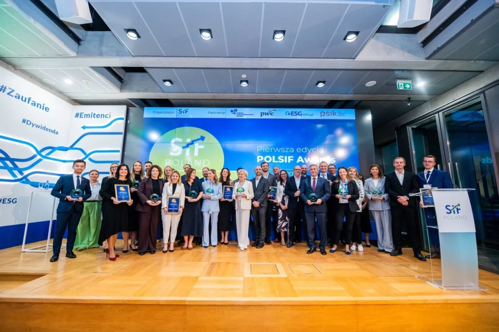 Zwieńczeniem konferencji była gala POLSIF Awards. To pierwsza edycja konkursu, organizowanego przez stowarzyszenie POLSIF. Ma on na celu wyróżnienie instytucji, funduszy i przedsiębiorstw, które w praktyce wdrażają rozwiązania wspierające transformację klimatyczno-energetyczną oraz rozwój gospodarki odpowiedzialnej społecznie.