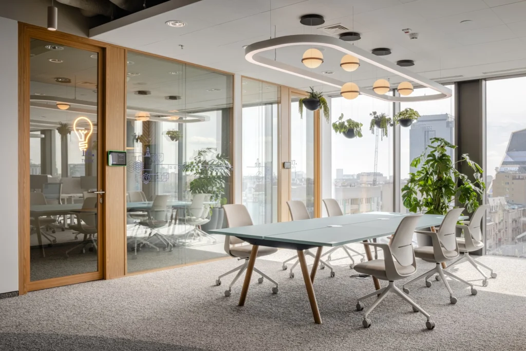Biuro zostało zaprojektowane z uwzględnieniem dostępności dla użytkowników o zróżnicowanych potrzebach. Wdrożono rozwiązania zalecane przez Fundację Integracja, przyznającą certyfikat „Obiekt bez barier”, takie jak regulowane biurka, pętle indukcyjne czy obniżone blaty. Wnętrza są bliskie naturze – zasady biofilii, mnogość roślin i naturalne wzory – wspierają dobrostan, koncentrację i kreatywność użytkowników.