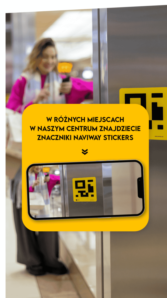 Dodatkowe wsparcie zapewniają aktywujące się znaczniki dźwiękowo-świetlne zamontowane nad każdym wejściem, które pomagają w dokładnym nakierowaniu do drzwi. Od momentu wejścia do obiektu użytkownik prowadzony jest po galerii dzięki oznaczeniom NaviWay. Aplikacja pomaga odnaleźć najważniejsze miejsca, informuje o poszczególnych sklepach mijanych po drodze oraz podaje ich dokładne położenie w galerii.